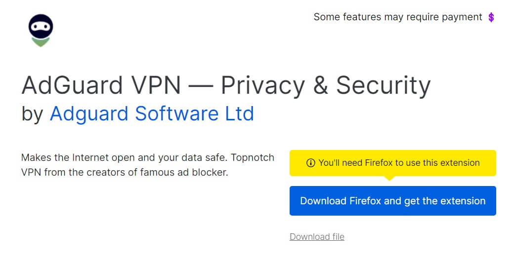 Расширение AdGuard VPN можно установить в браузер от Мозилла двумя способами: либо посетив официальный сайт разработчика (выбрать пункт меню “Продукты — Firefox — Получить расширение), либо напрямую через официальный магазин браузера. В нём найдите AdGuard, нажмите “Получить”, после чего разрешите браузеру установку ПО из сторонних источников.