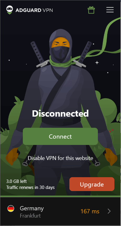 Если у вас уже куплена подписка AdGuard, вы можете подключиться к ВПН. В противном случае будет предложено оплатить ее на официальном сайте.